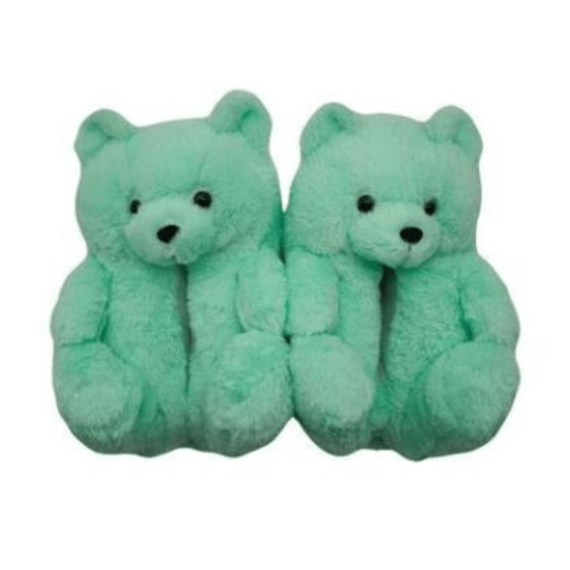 Green Teddy Bear Slippers – Soft and Warm Furry Design$39.99 USD -